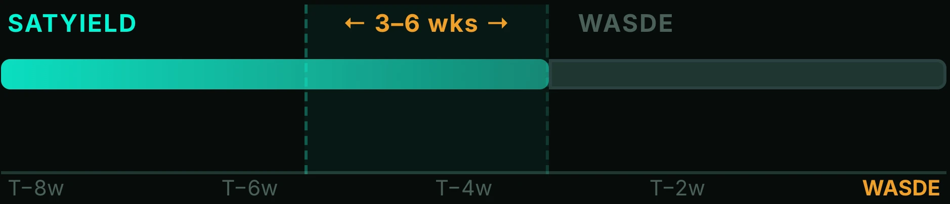 Timing depends on superior signal. Without timely, high-resolution crop data, markets react late and trade noise instead of reality.